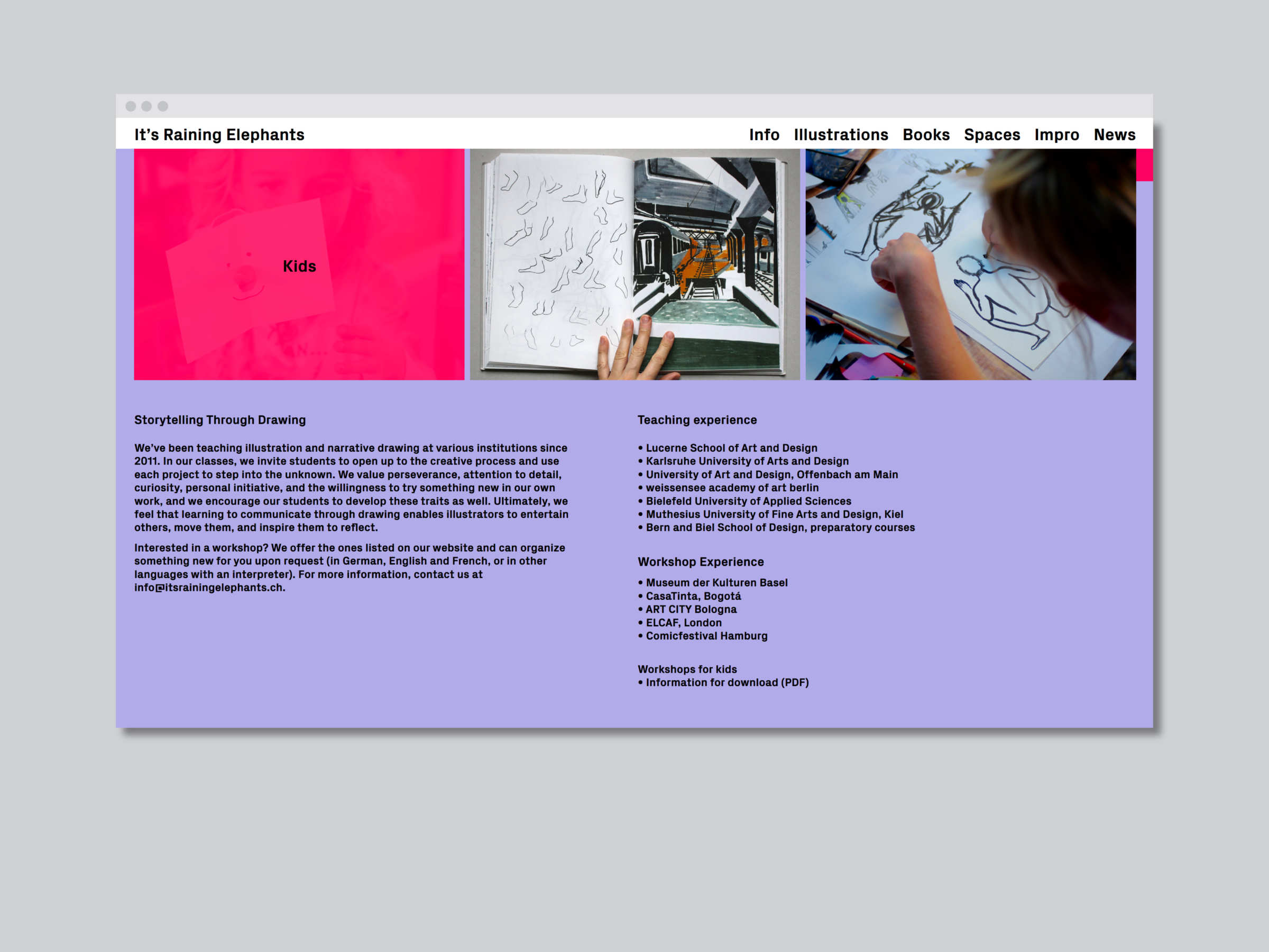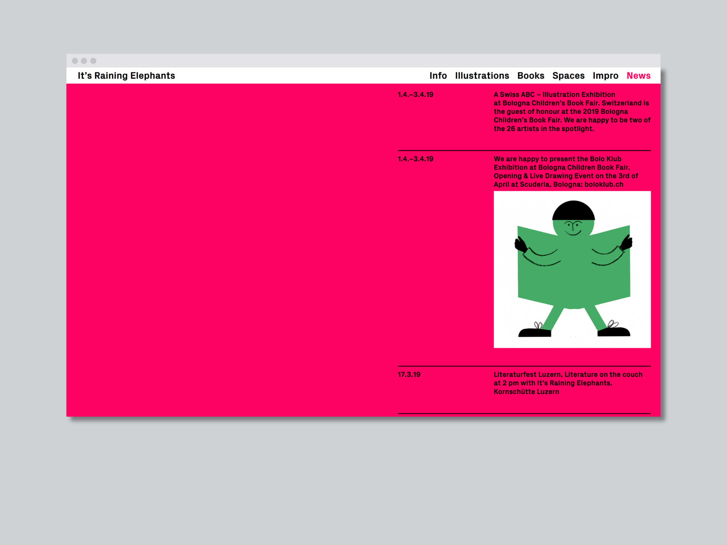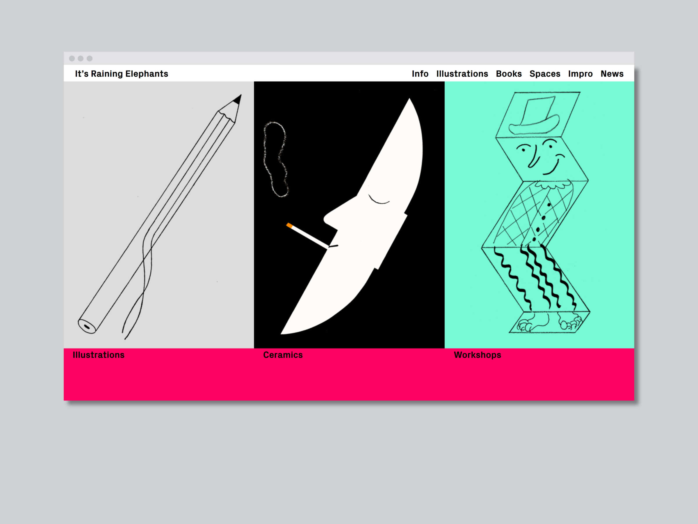 It’s Raining Elephants i Website It’s Raining Elephants 2017 Website for the illustration studio It’s Raining Elephants. Prev Next