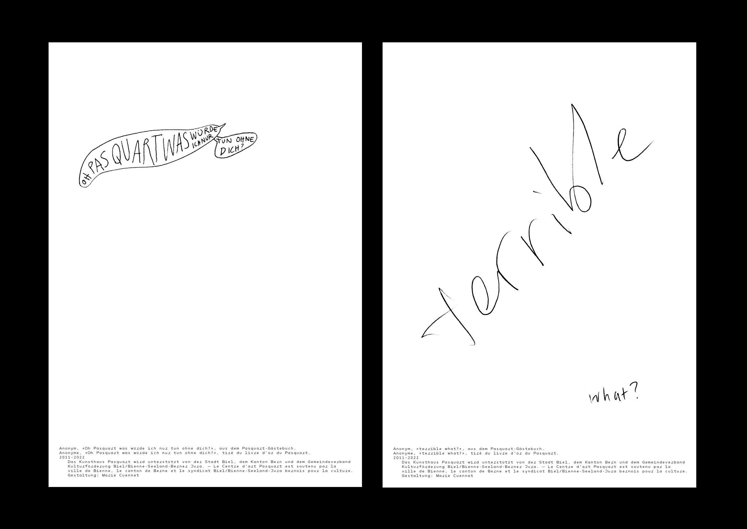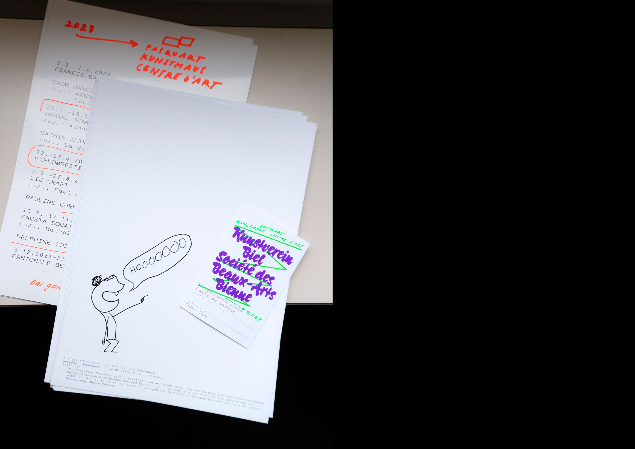 On the backside of the annual programm flyer, different sccribles and notes from the Kunsthaus Guestbooks were printed.