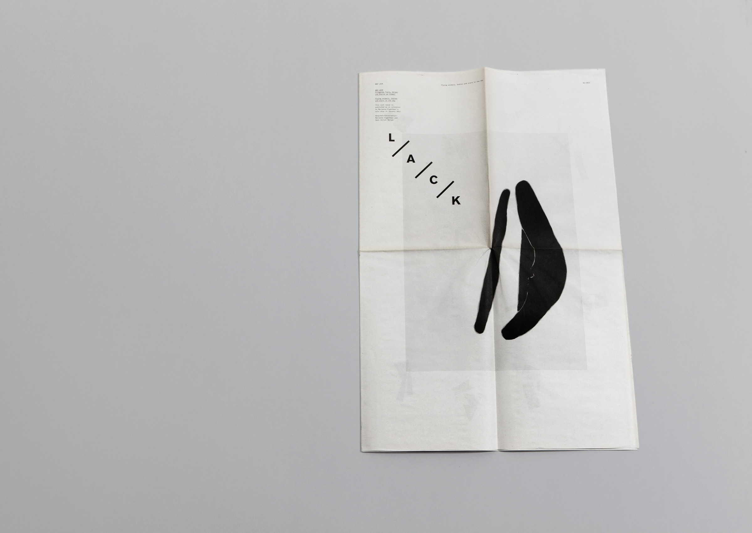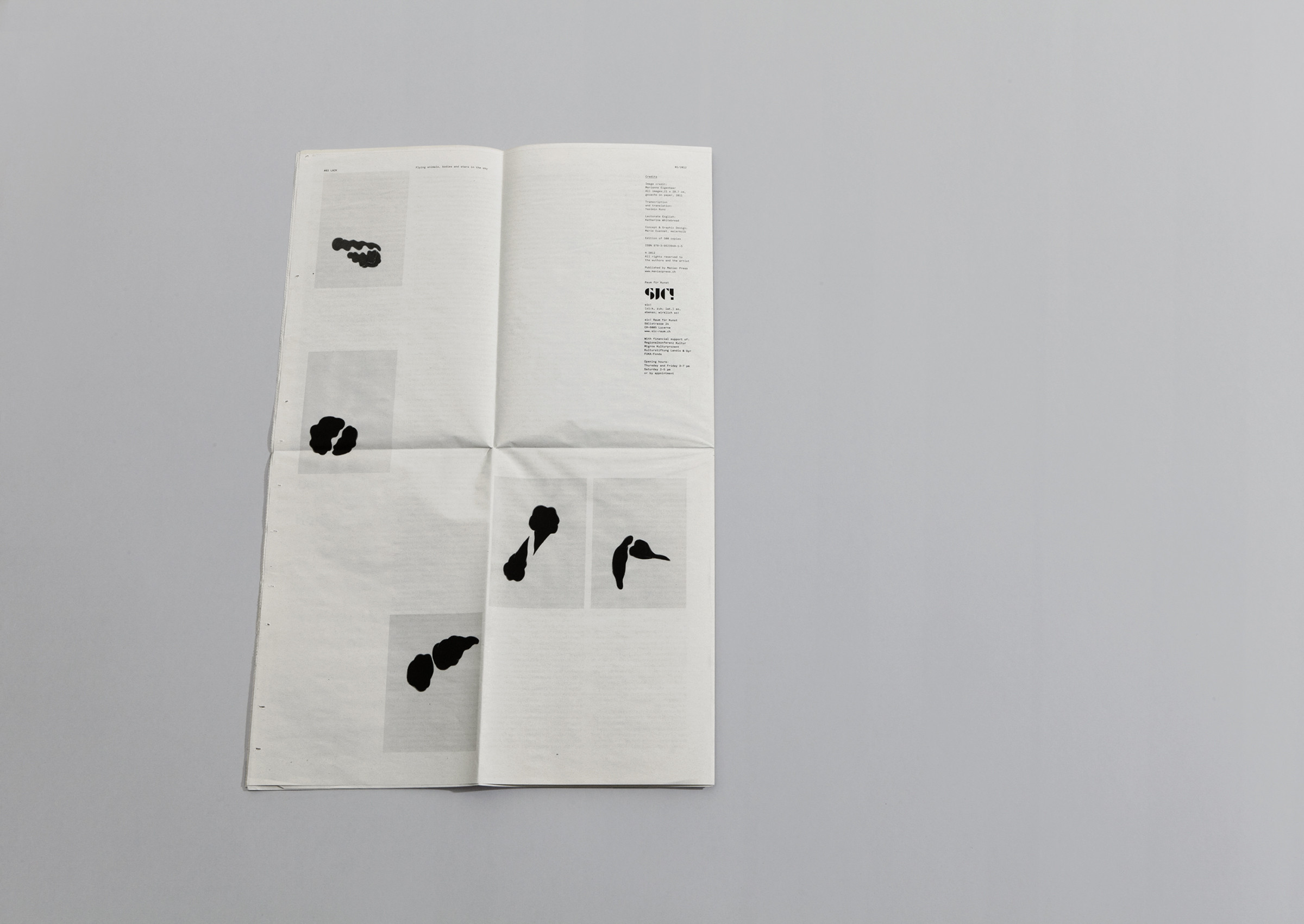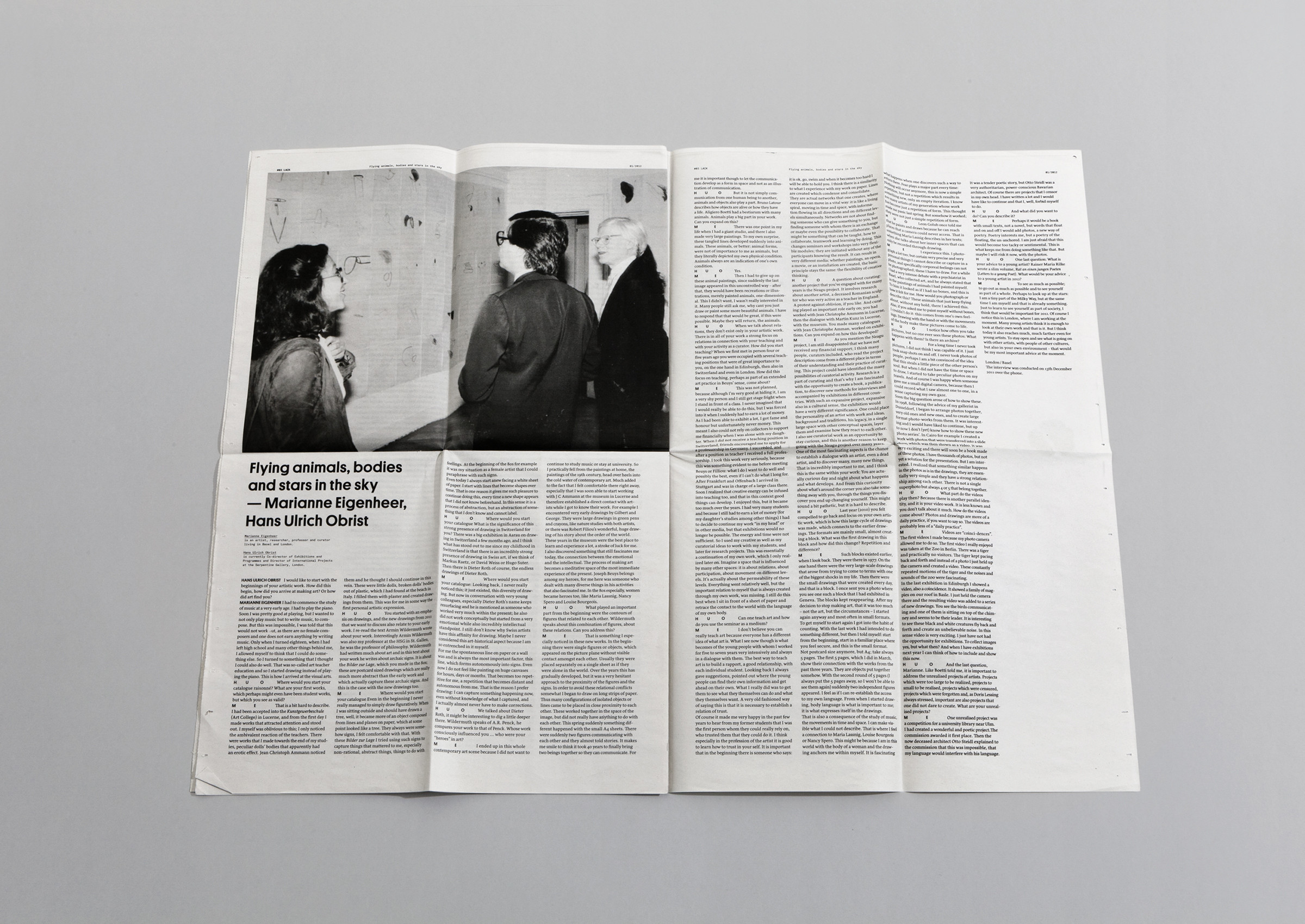 Design of the Newspaper “Flying Animal, Bodies and Stars in the Sky” featuring Interview with Marianne Eigenheer and Hans Ulrich Obrist for sic! Raum für Kunst, Lucerne.