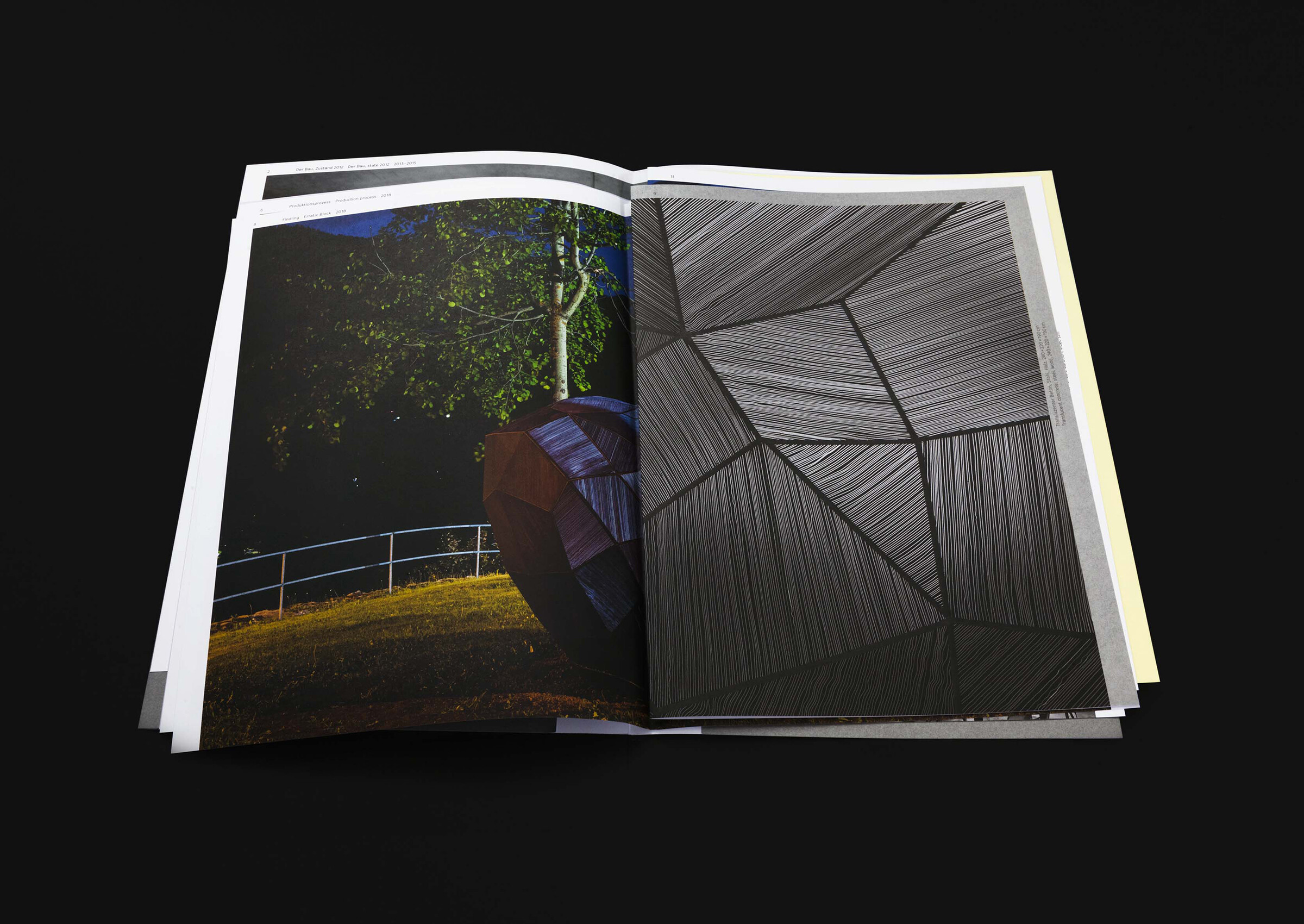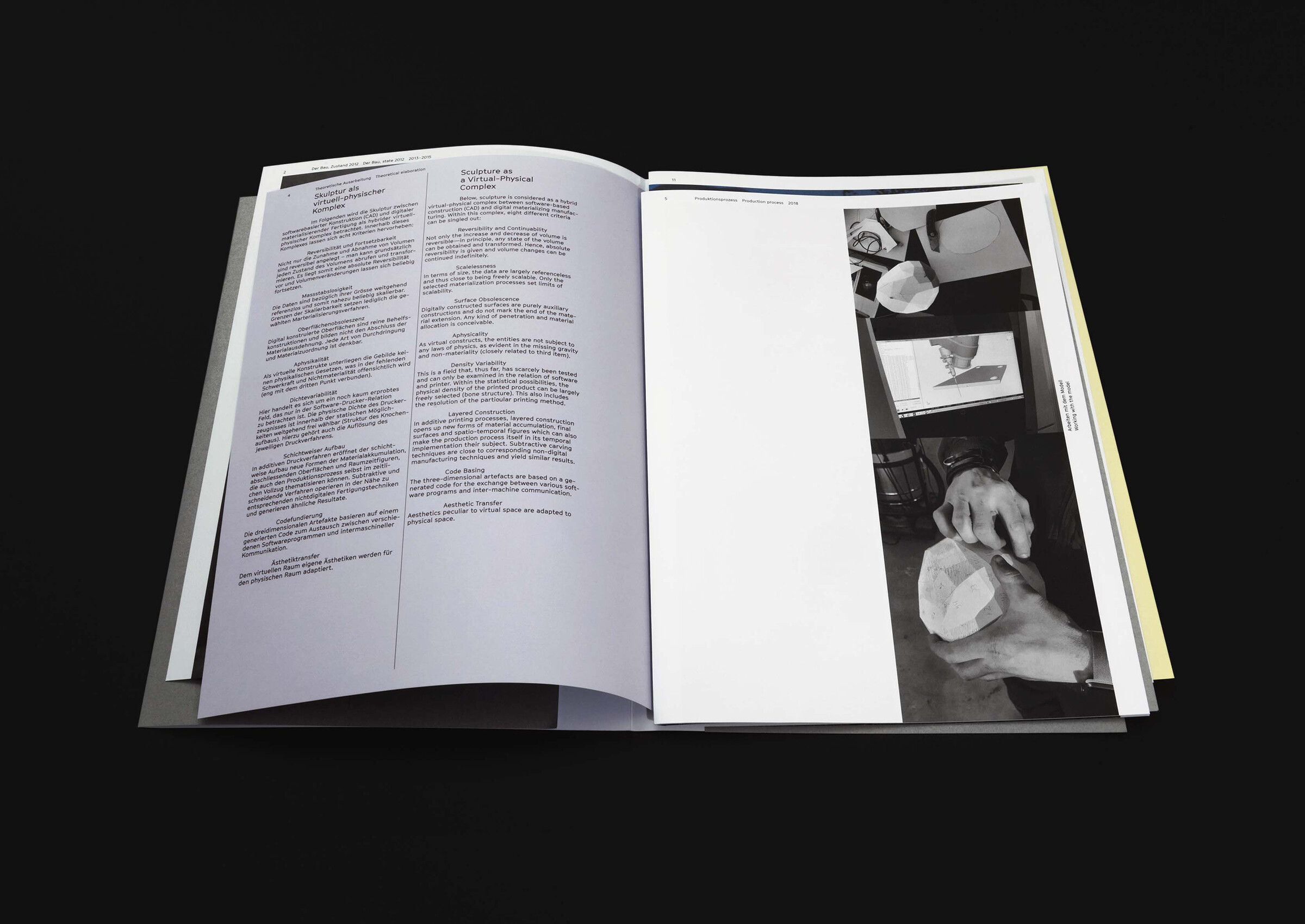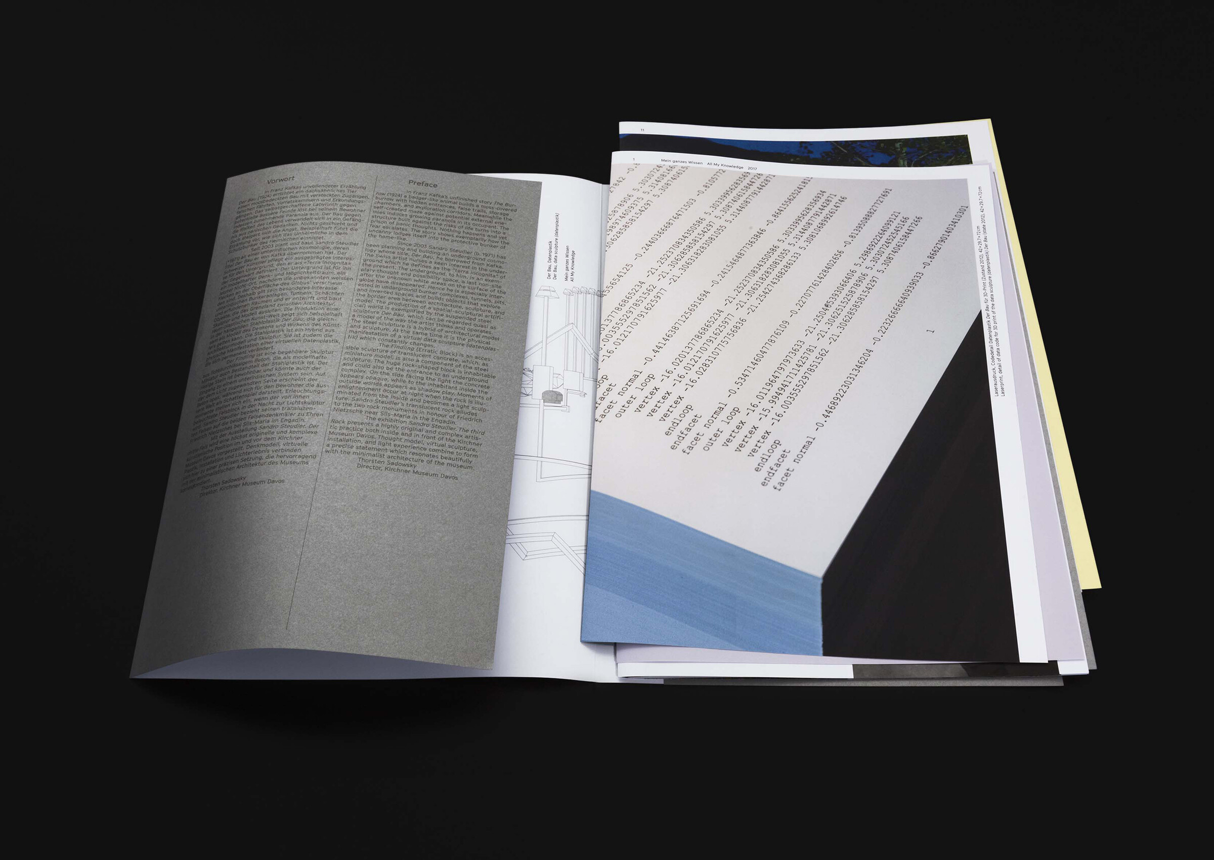The pages aren’t binded and can be mixed like the different parts of the exhibition and the process flow into each other.