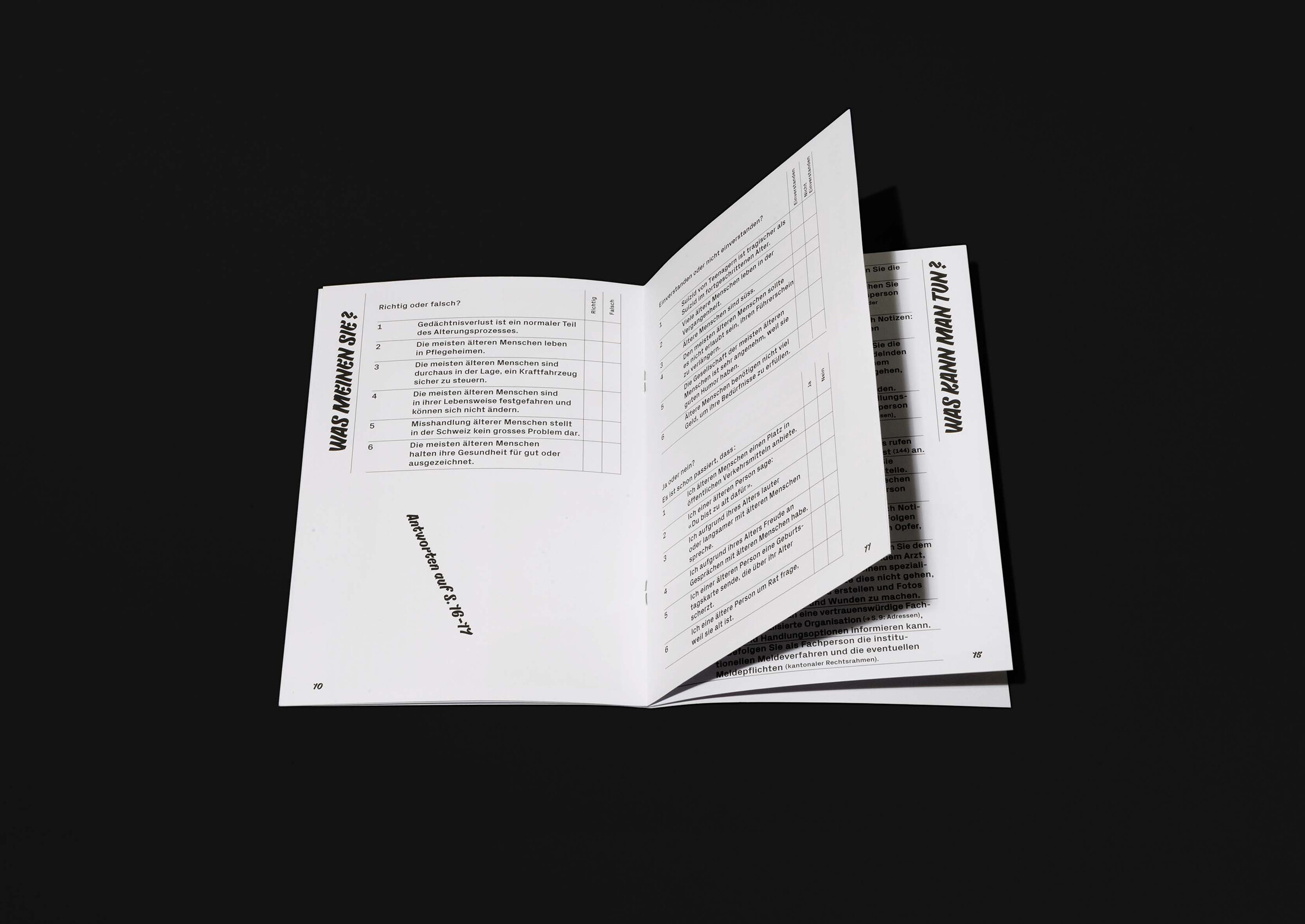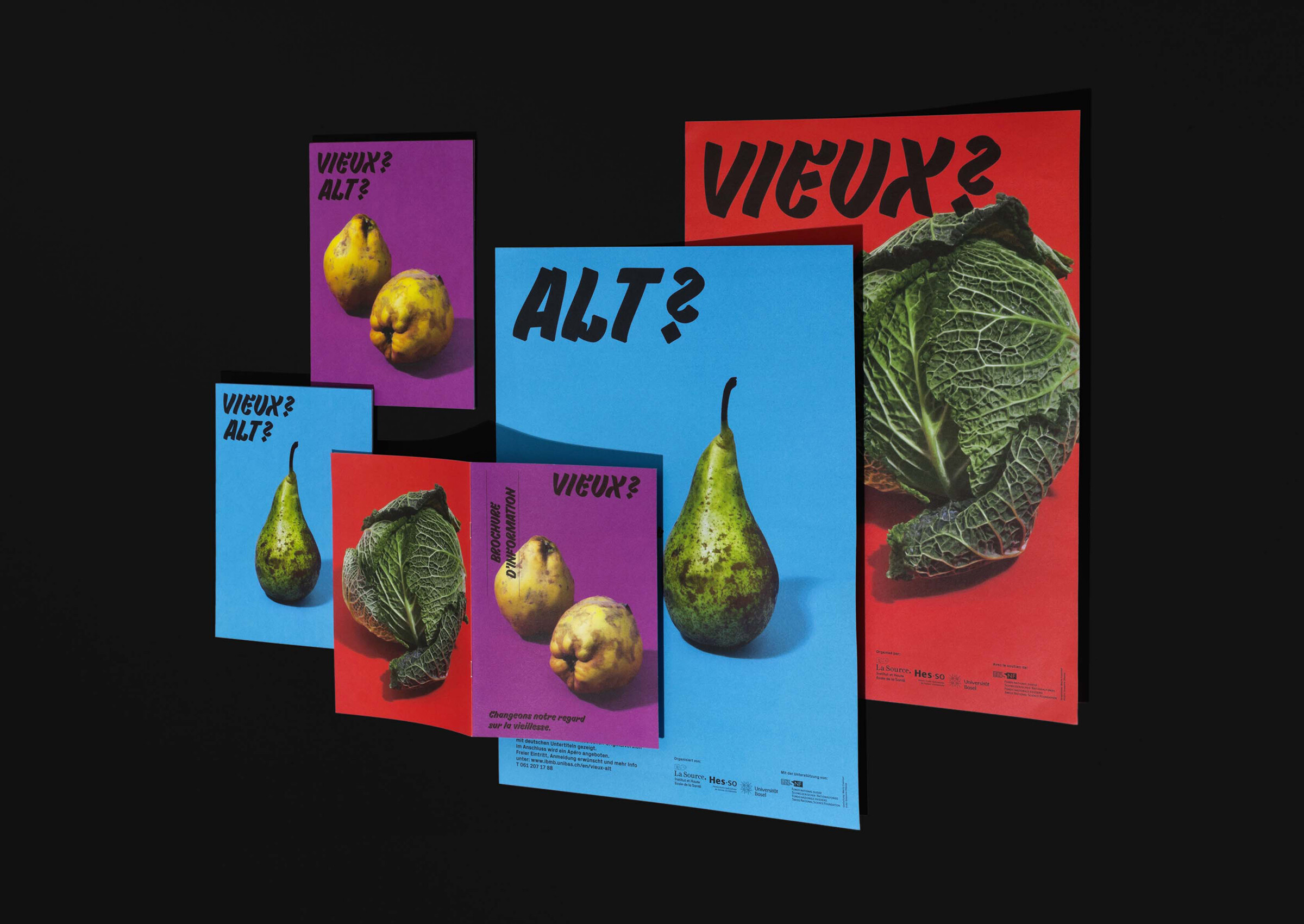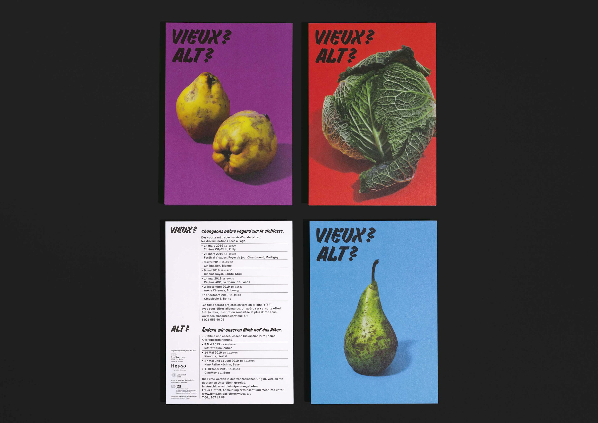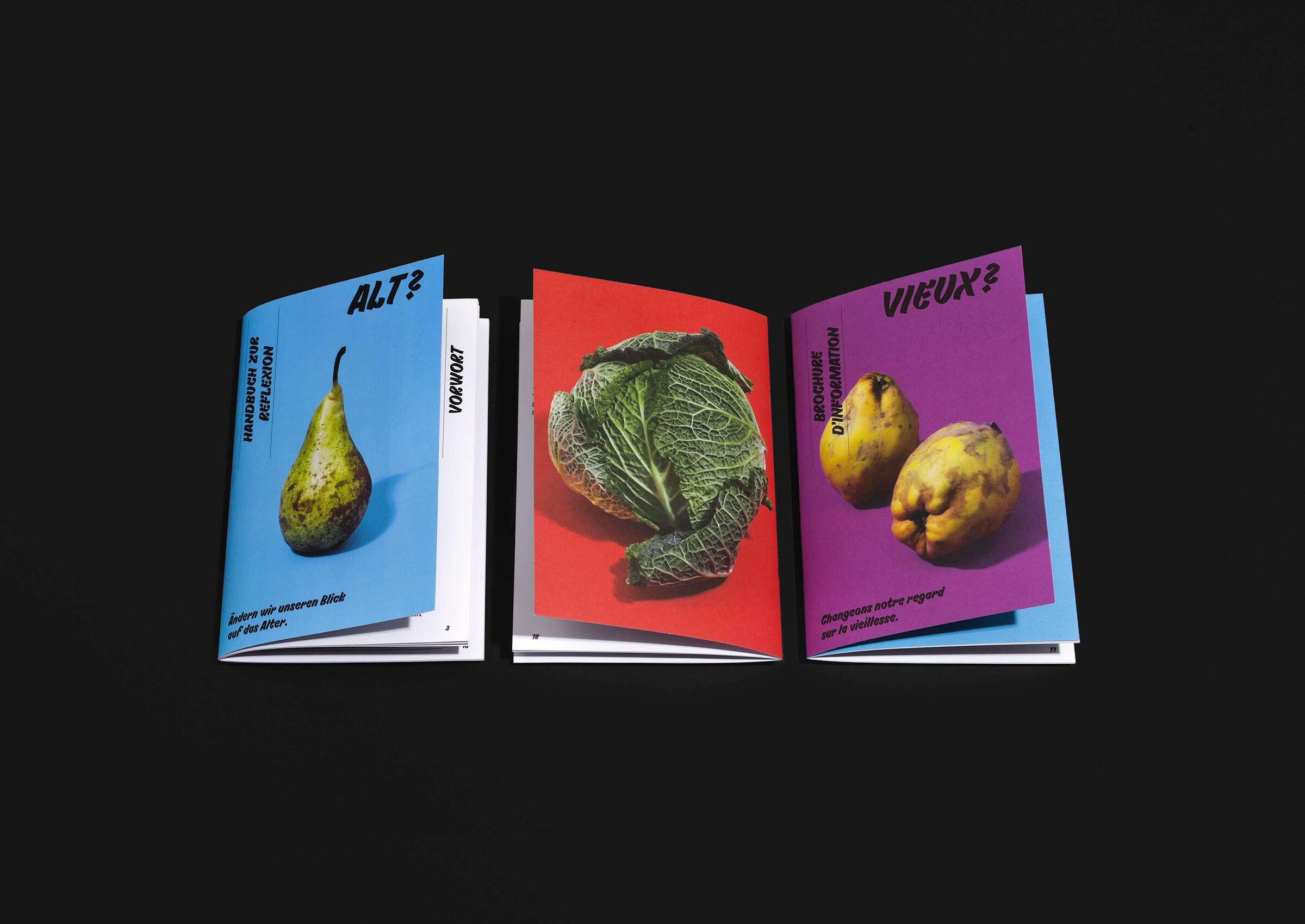 Vieux? Alt? i Poster, Flyer, Booklet, various media Offset printing For Institut et Haute Ecole de Santé la Source Lausanne, University of Basel 2019 ‟Changeons notre regard sur la vieillesse.” ‟Ändern wir unseren Blick auf das Alter.” A campaign about ageism organised by Ecole de la Source Lausanne and the University of Basel with short films from ecal students. more info in french or in german. Photography by Susanne Stauss Prev Next