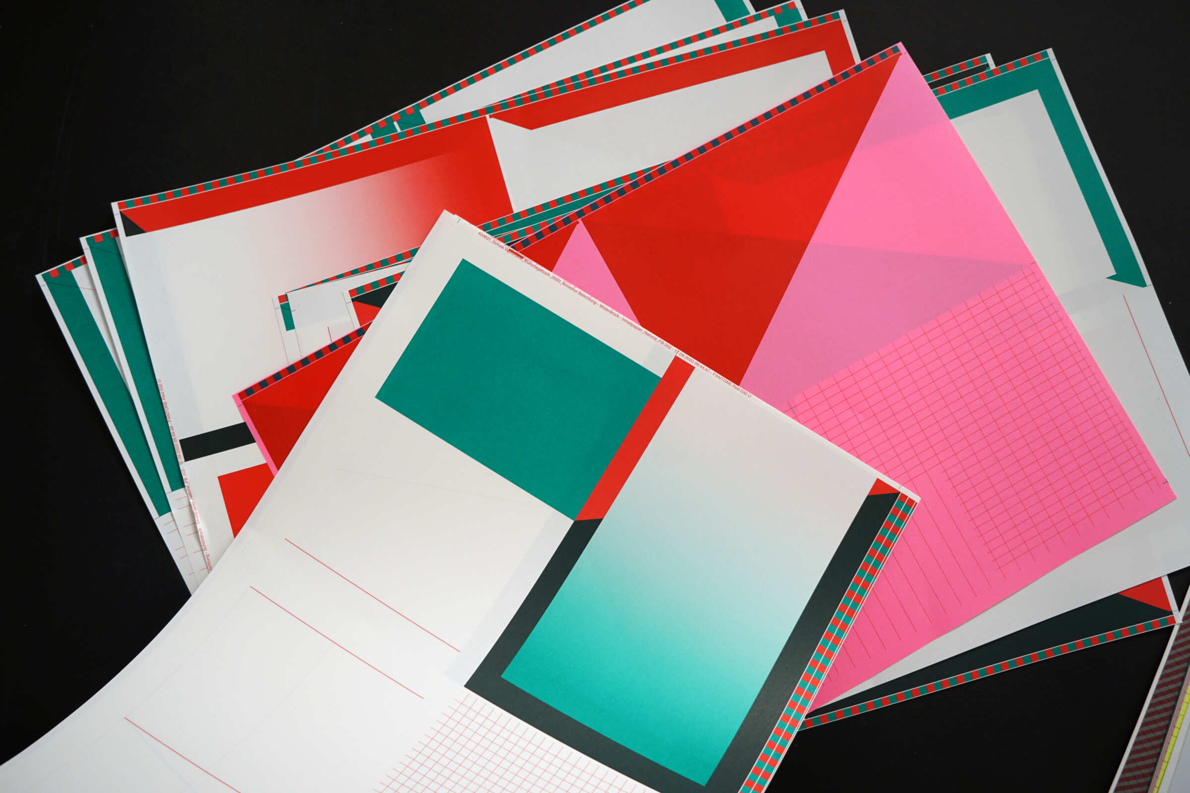 Notebook for high school students. The colorful booklet explores themes of visual «errors». The pages are held together with a rubber band so that a collection of found papers can be included.
